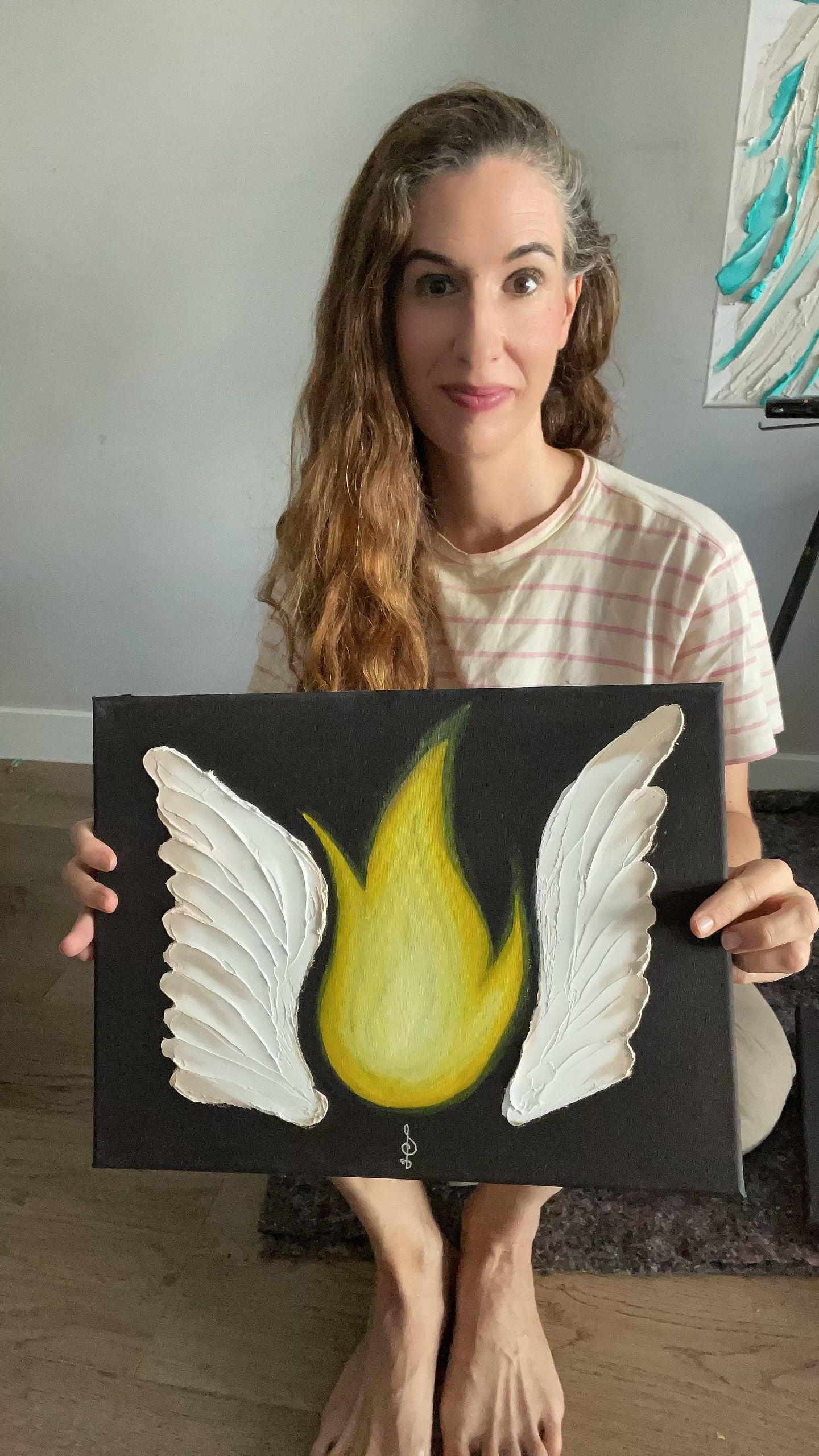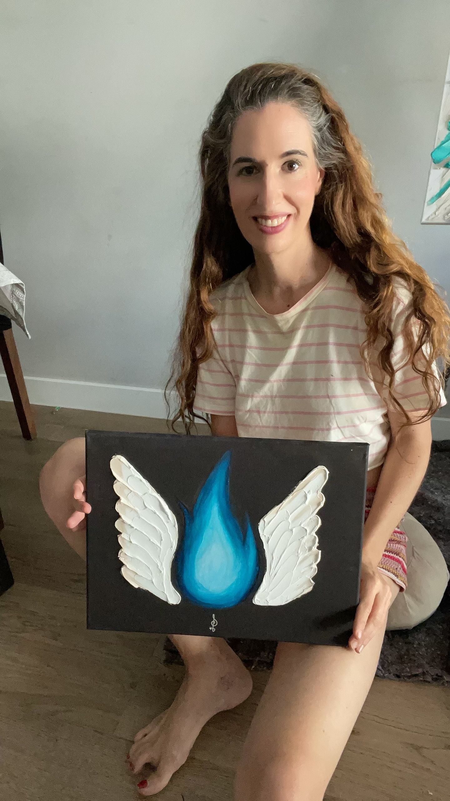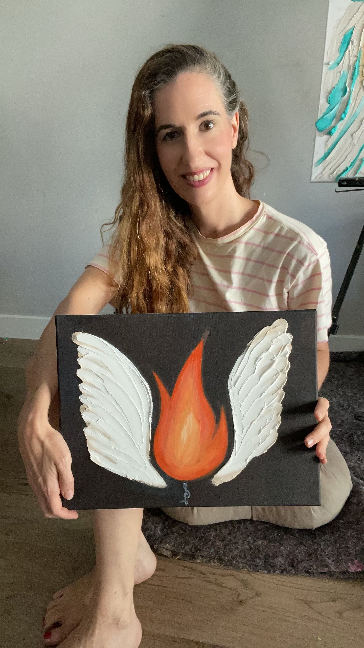 Esta pintura es pasión, fuego y autenticidad. Es un homenaje a la mujer que se reconoce, se honra y se ama tal como es: completa, libre y luminosa.